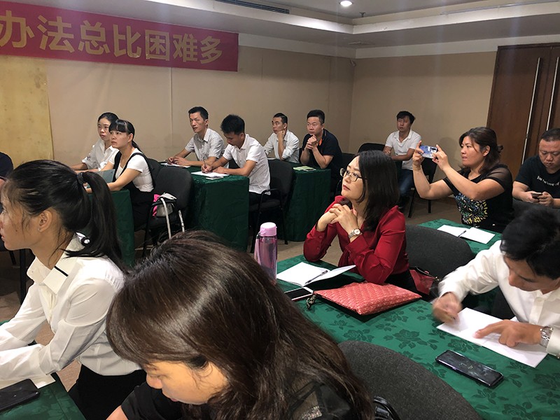 在整個培訓過程中,北斗星導師分享了活動策劃、渠道推廣到老客戶維護轉介紹等等內容,為前來學習的經銷商家人們提供了滿滿的銷售干貨?,F場培訓學習氣氛熱烈,每一位學員都以空杯心態不斷汲取知識,認真的在聽講,時不時的發表自己的疑惑。導師們并針對問題一一解答,細致耐心。