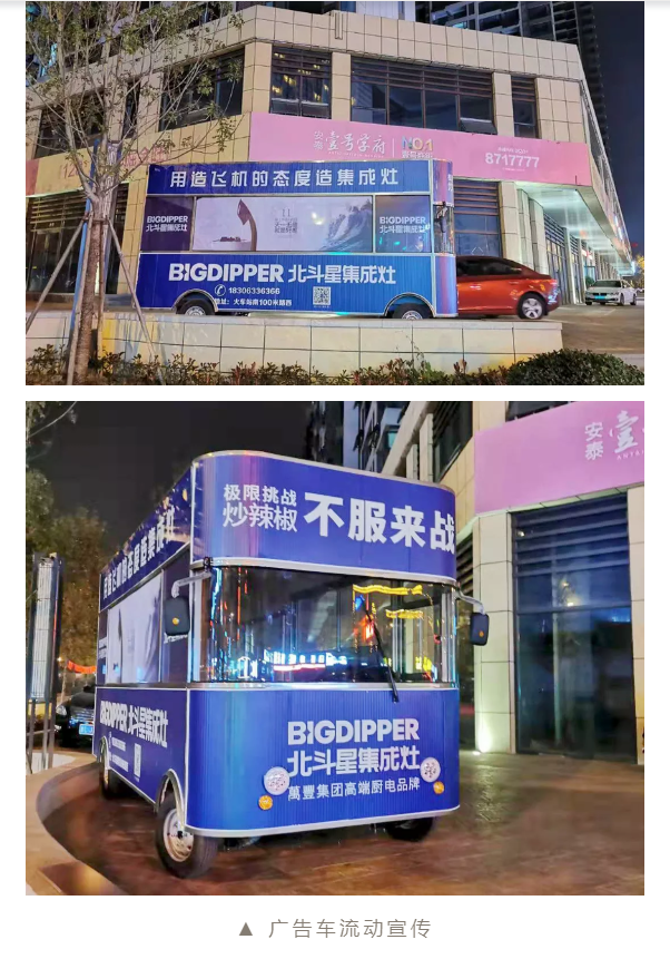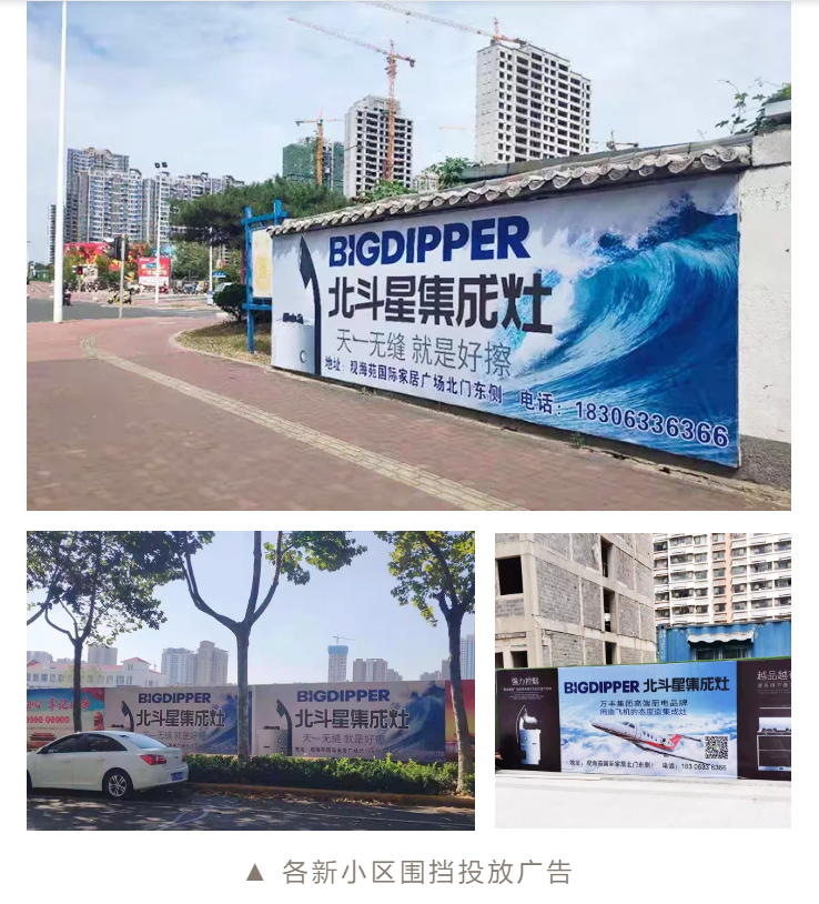 北斗星日照店還相繼對各大小區(qū)電梯廣告、消防宣傳欄以及小區(qū)圍擋等進(jìn)行精準(zhǔn)投放,聚焦目標(biāo)受眾,迅速引爆市場,讓小區(qū)周邊的顧客都能看到北斗星的廣告,在產(chǎn)品以外加強(qiáng)與消費(fèi)者的情感溝通,鞏固北斗星集成灶在日照城市的廣告熱度。