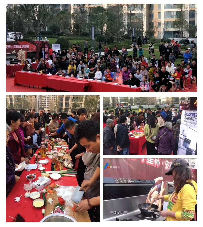 緊接著北斗星集成灶聯(lián)合日照安泰房產(chǎn)在名筑小區(qū)隆重舉辦“北斗星杯·安泰小區(qū)廚王爭霸賽”,創(chuàng)建良好鄰里氛圍,倡導(dǎo)無煙健康廚房!讓現(xiàn)場嘉賓通過切身使用北斗星集成灶大秀廚藝,巧妙地將北斗星健康廚房的理念進(jìn)行了宣傳推廣,讓更多的消費(fèi)者認(rèn)識北斗星、了解北斗星、選用北斗星。