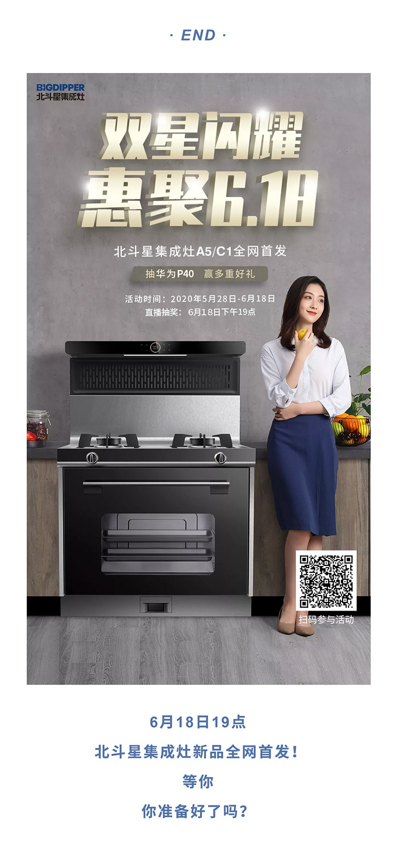雙星閃耀,惠聚618!北斗星集成灶新品全網(wǎng)云首發(fā)