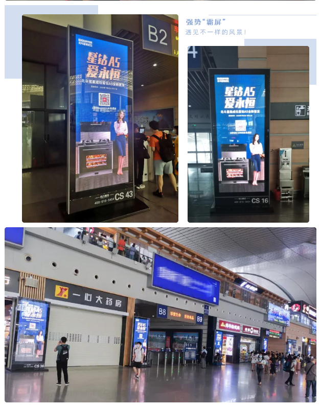 北斗星長沙店此次廣告的投放,主要分布在長沙高鐵南站到達、出發(fā)層等人流量密集的重點位置,廣告位多達65個,搶占顯眼核心資源,為長沙門店提供強大的品牌支持。同時,通過高鐵站廣告大范圍傳播方式提高廣告與受眾的接觸頻率,北斗星集成灶勢將成為消費者更熟悉、更信賴、更喜愛的高端廚電品牌!