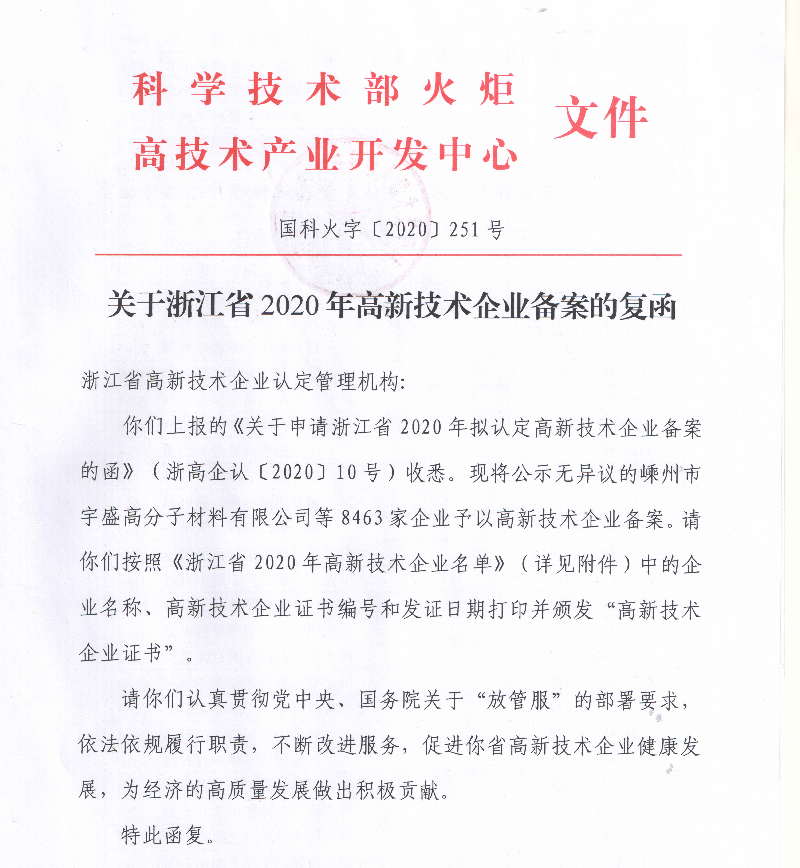 近日,全國高新技術企業認定管理工作領導小組辦公室發布《浙江省2020年高新技術企業名單》公示,北斗星智能電器榜上有名。(證書編號:GR202033006550)