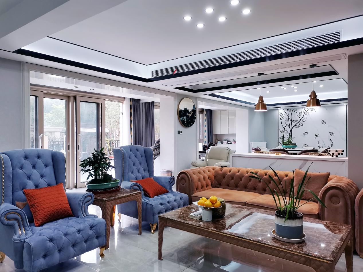 客廳四面是白色乳膠漆,會掛上自己喜歡的裝飾畫點綴,這樣不會顯得太空;頂部安裝了隱形燈,亮堂又美觀;地磚也是白色,但有一點大理石紋路的,不至于白得反光,還挺有質感,還可以顯空間大,以及很好搭配軟裝,軟裝基本都是北歐風格的單品集合,顏色是根據自己喜好來搭配的。