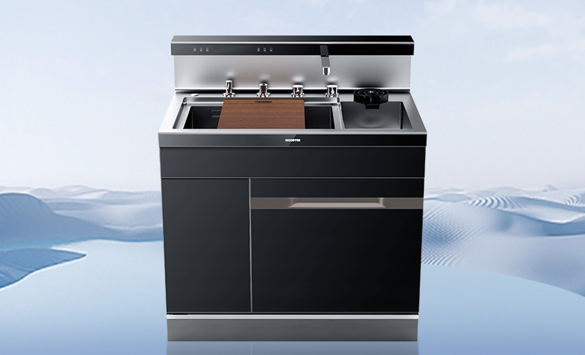 V8集成水槽洗碗機,延續“天一無縫”品牌符號,其搭載寬大置物臺、大容量鉑金水槽、冷熱凈三合一龍頭和12套大容量洗碗機。洗滌大空間,打造集成凈洗中心 !